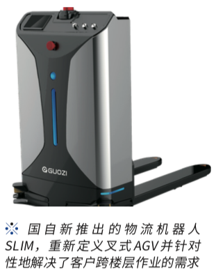 国自机器人新推出的物流机器人SLIM不仅重新定义叉式AGV,也针对性地解决了客户对跨楼层作业的需求。
