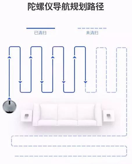 其实主要是依靠它内部的陀螺仪传感器来保证精确的位置信息,通过测量扫地机器人移动的方向及角速度,然后计算出角度信息,再根据距离信息并利用“推算定位DR(DeadReckoning)”的方法推算出位置,以此实现更加精确的路径导航。