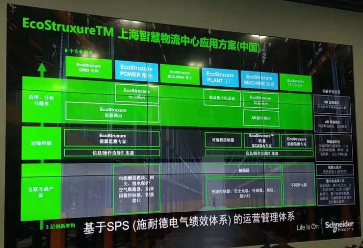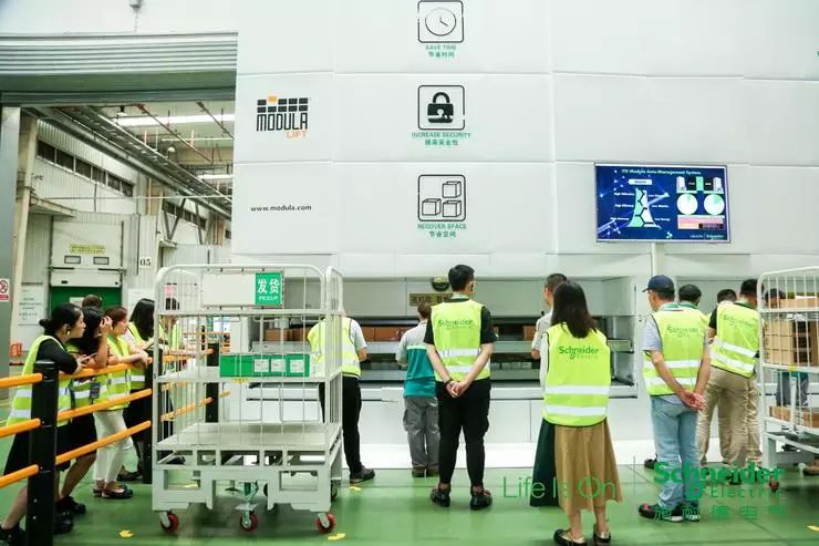 据了解,这个智慧物流中心是2000年时启用的,大约2012年开始,施耐德电气陆陆续续对它进行了数字化改造,尤其是近两年,施耐德电气对这个物流中心进行了精益生产的部署,运用了自家的工业互联网平台EcoStruxure进行了赋能,使其工作效率越来越高。
