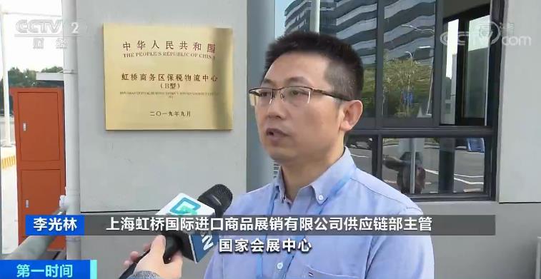 上海虹桥国际进口商品展销有限公司供应链部主管 李光林:这次进入到虹桥商务区保税物流中心的货品是一批进口化妆品,随后它将去到三公里外的国家会展中心,在进博会期间进行展示。随后再去到一街之隔的虹桥进口商品展示交易中心进行延展交易。