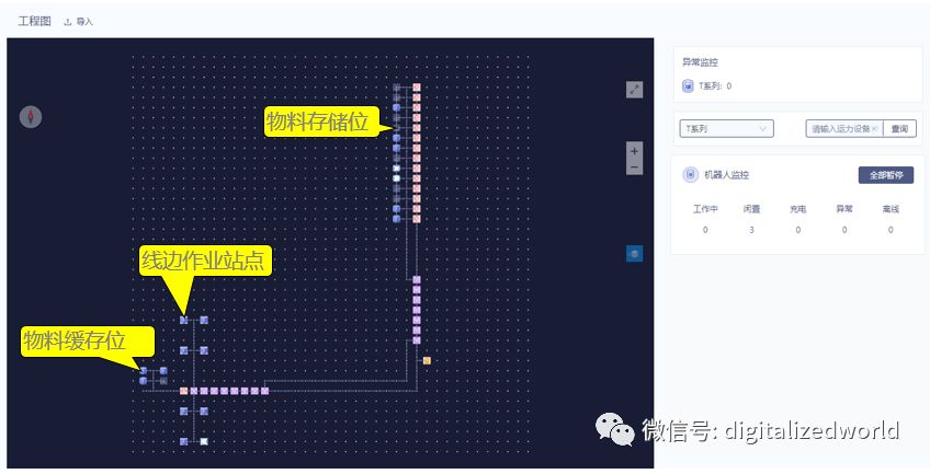 下图是基于旷视河图的一个工厂物料搬运项目的AGV监控界面,可以实时查看AGV的作业过程,如果发现异常生成实时告警。