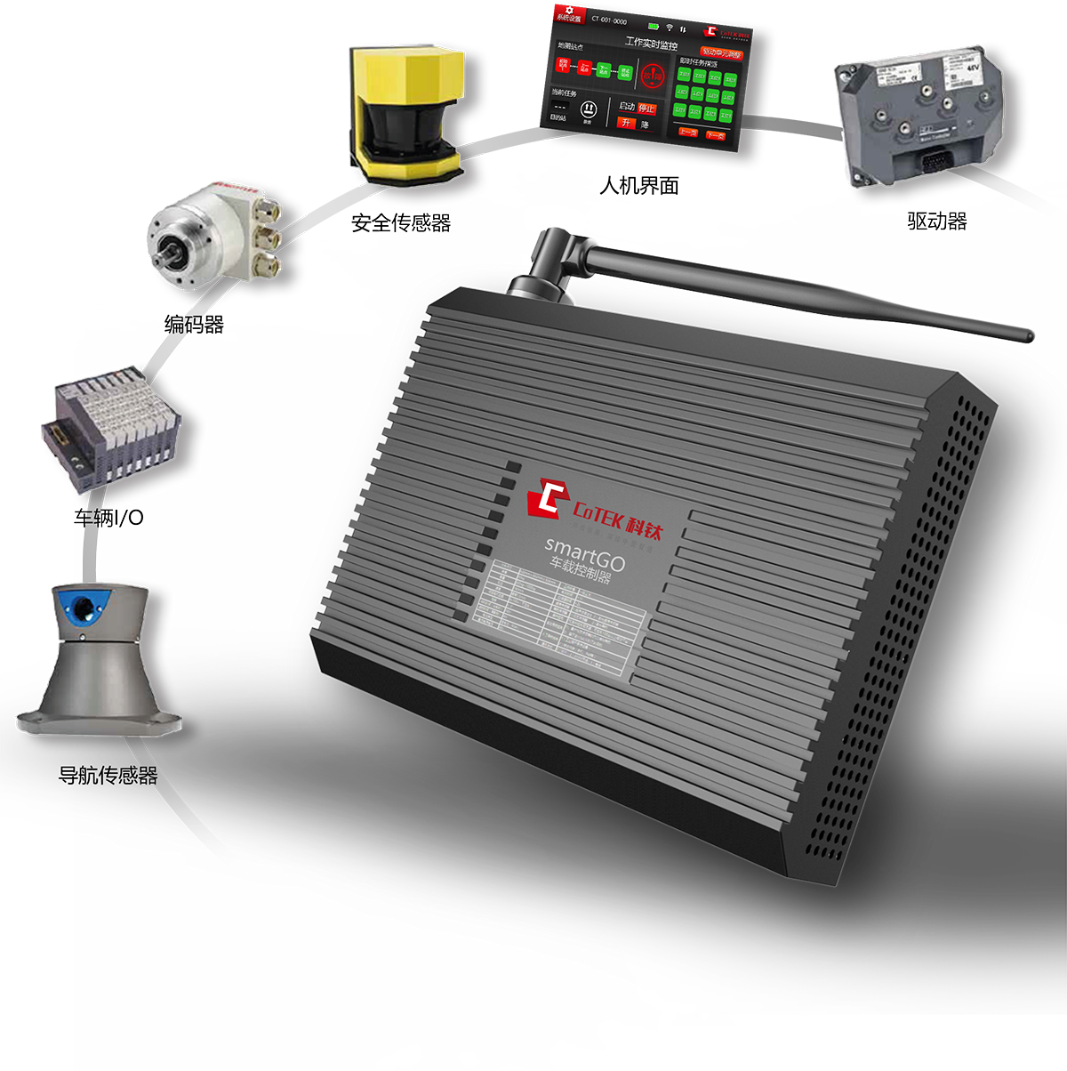 科钛核心控制器解决方案是一个开放的可扩展的技术平台,拥有软件、硬件以及专为工厂和仓库研发的IGV导航系统。该平台科钛持续研发迭代,不断升级更新。科钛SmartGO自主无人系统大脑是我国首款完全自主研发、具有完整知识产权和国际竞争力的自主移动机器人及工业车辆的核心车载控制系统。硬件连接采用Ethernet和CAN总线系统,所有电子部件经由总线系统控制、可无限扩展、易配置,走线简洁、可靠性强。软件系统采用先进的人工智能算法,实现移动机器人的自主决策、高精度的定位与姿态估计、高效的路径规划和重规划、精准的运动控制和动作执行以及高可靠性的安全应对于一体。SmartGO控制器支持自然导航、激光、二维码、惯性、有轨及混合导航技术,同时兼容多种车型,包括差速驱动、舵轮驱动、四驱、全向等运动方式的车辆。