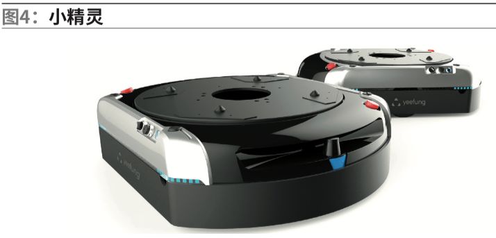 在立体仓库中进行物料分拣和存入货架的过程,选择二维码导航的物流搬运AGV(小精灵)(图4),