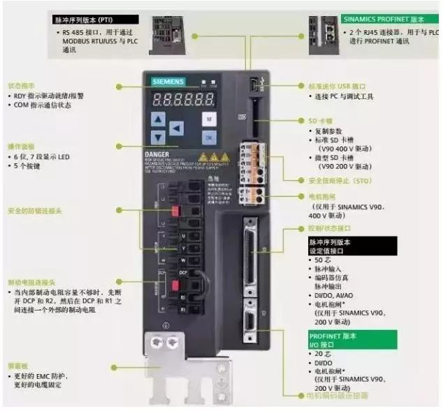 SINAMICS V90 PROFINET 版本的系统接线图: