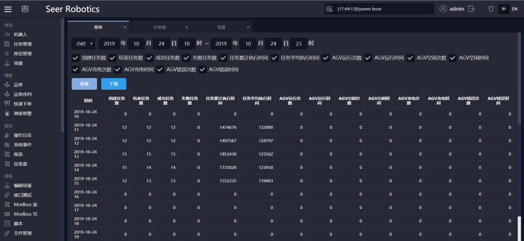 同时,RoboGlue作为工厂物流信息中心与业务枢纽,能够实时监控全场物流信息状况及移动机器人运行位置,对物流信息进行全局跟踪记录;另外RoboGlue还具有强大的功能为用户提供可视化管理。如报表及仪表盘功能,便于用户根据数据图表进行分析,及时调整生产与运输作业;调度报警功能,能够及时发现问题并进行反馈;快速下单功能,支持用户手动下单,根据现场实际需求呼叫上下料;用户管理功能,为每个产线工位分配相应的角色及权限;库位管理功能,提供库位及产线工位实时监控等。