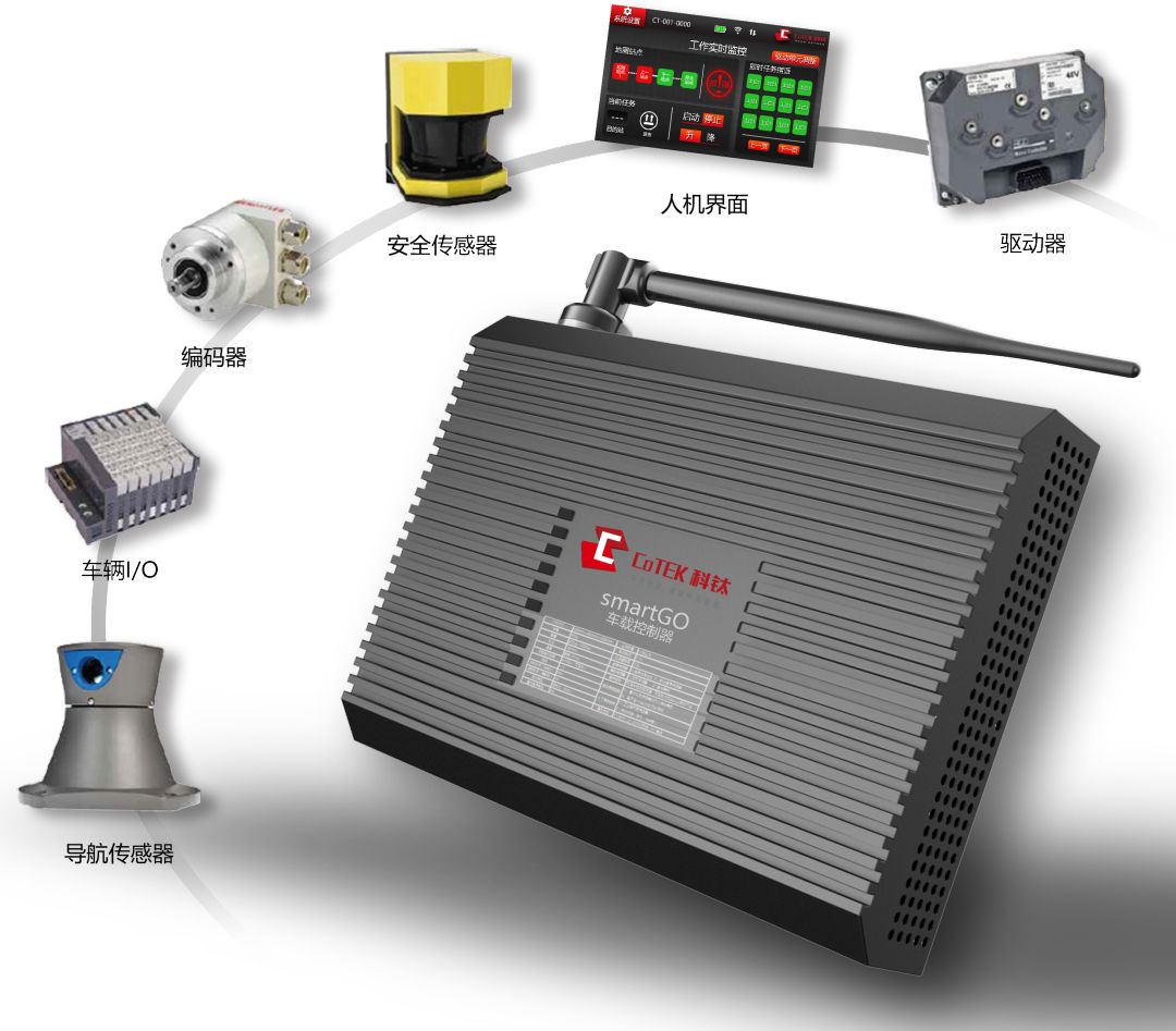 科钛核心控制器解决方案是一个开放的可扩展的技术平台,拥有软件、硬件以及专为工厂和仓库研发的IGV导航系统。该平台科钛持续研发迭代,不断升级更新。科钛SmartGO自主无人系统大脑是我国首款完全自主研发、具有完整知识产权和国际竞争力的自主移动机器人及工业车辆的核心车载控制系统。硬件连接采用Ethernet和CAN总线系统,所有电子部件经由总线系统控制、可无限扩展、易配置,走线简洁、可靠性强。软件系统采用先进的人工智能算法,实现移动机器人的自主决策、高精度的定位与姿态估计、高效的路径规划和重规划、精准的运动控制和动作执行以及高可靠性的安全应对于一体。SmartGO控制器支持自然导航、激光、二维码、惯性、有轨及混合导航技术,同时兼容多种车型,包括差速驱动、舵轮驱动、四驱、全向等运动方式的车辆。