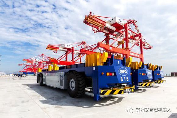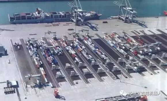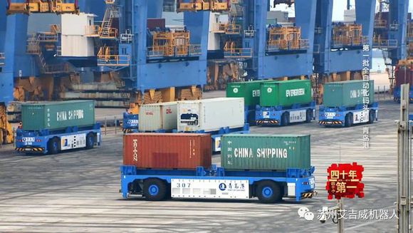 青岛港中有38台带举升AGV,纯电动,且有世界最轻之称。Ta配置自动循环充电是全球首创,续航时间无限制。