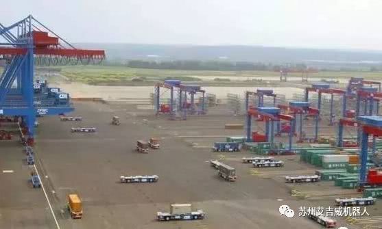 应用在无人码头的智能AGV,如下图一样AGV,或是其搭配AGV伴侣,还有一种是带升降平台的提升式AGV。(这个时候呢,一般得甩过来一个AGV发展历史,但偏不)