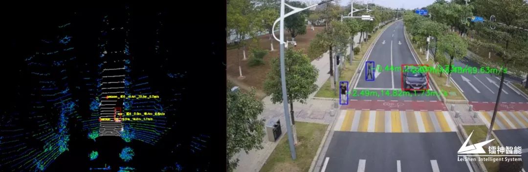 镭神激光雷达车路协同路侧感知系统,将多线激光雷达架设于道路出入口、大型十字路口等,同时可配合摄像头、毫米波雷达等多种传感器,将路面信息包括来往行人、物体全部纳入V2X的数据网络中,再通过交通控制中心服务器向周边或者更远距离的车辆进行广播,同时为车辆提供路口通行信息及交通安全信息提示,包括红灯提醒、驾驶速度提醒、盲区提醒等等。