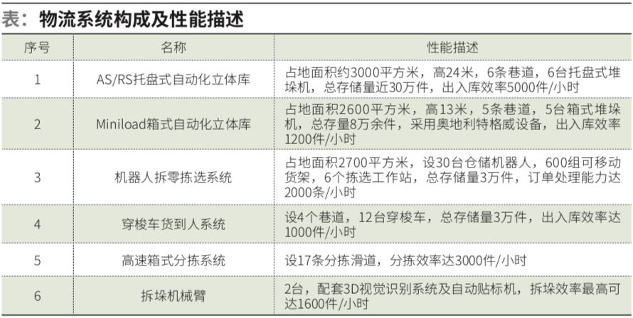 国药山西物流中心(一期)项目物流系统构成及性能描述参见图表: