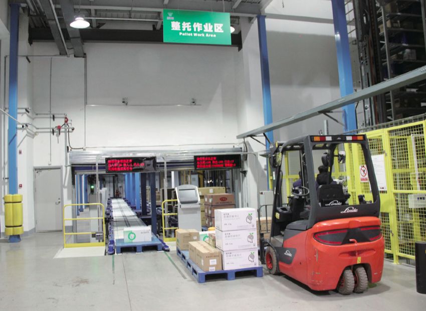 货品在完成常规的收货、验收后,作业人员会根据系统指示将进入货品送至相应的入库区域——整托作业区、整箱作业区,进行入库处理。