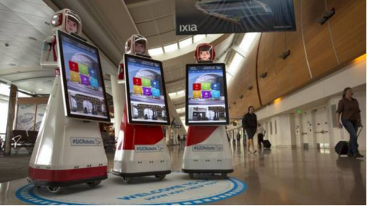 在位于硅谷的Mineta San Jose国际机场有三位机器人工作人员:Piper,Amelia和Norma,这些机器人外形上酷似穿着红裙的少女,拥有32英寸的大型触控显示屏,使用Windows软件,并可以用英、法、德、日、西班牙5种语言提供信息。除了提供餐饮、购物信息外,这三个机器人还可以跳舞、播放音乐、为游客拍照,并且可以通过电子邮件给游客,或者直接显示在屏幕上成为机器人的“脸”。机场管理人员一方面希望通过使用机器人为旅客提供更好的服务,另外一方面也希望通过机器人反应硅谷地区独特的创新文化。