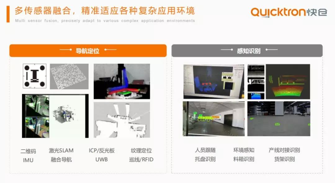 1、自动驾驶技术:包括环境感知、智能避障、自主导航等,像医院、机场火车站、工厂产线这类人机混场的场景中,传统导航方式存在一定的局限性,快仓于2018年成立了自动驾驶团队,专注于四面墙内的自动驾驶技术研发工作,例如为机器人配备slam导航方式,它摆脱了对辅助导航标志的依赖,可将环境中的自然物体作为定位参照物,在四面墙内自主识别环境并自动规划路径,实现智能避障。当然同时使其具备多种混合导航模式,可自由切换slam、纹理、二维码、IMU、UWB等多种导航方式也是快仓团队积极努力的目标!