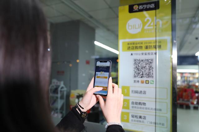除了机器人配送外,苏宁还将部分符合条件的24小时双模Biu店调整为24小时无人经营模式,即把这些原来是白天为常规苏宁小店、晚上10点至次日早上7点之间开启无人运营模式的店面,调整为24小时无人经营模式,实现了消费者全时段全流程自助购物。单个用户扫码进门、自助收银结算,自助离店,减少人为交叉感染,满足消费者购物需求的同时,保证经营效率。
