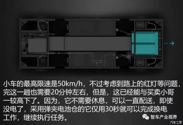 这段路距离1.7km,满载续航里程100km的无人物流小车一天可以跑20多个来回,起码能为将近100户居民递送食品,而它2.4立方米的大货箱不仅仅可以完成配送食品的任务。