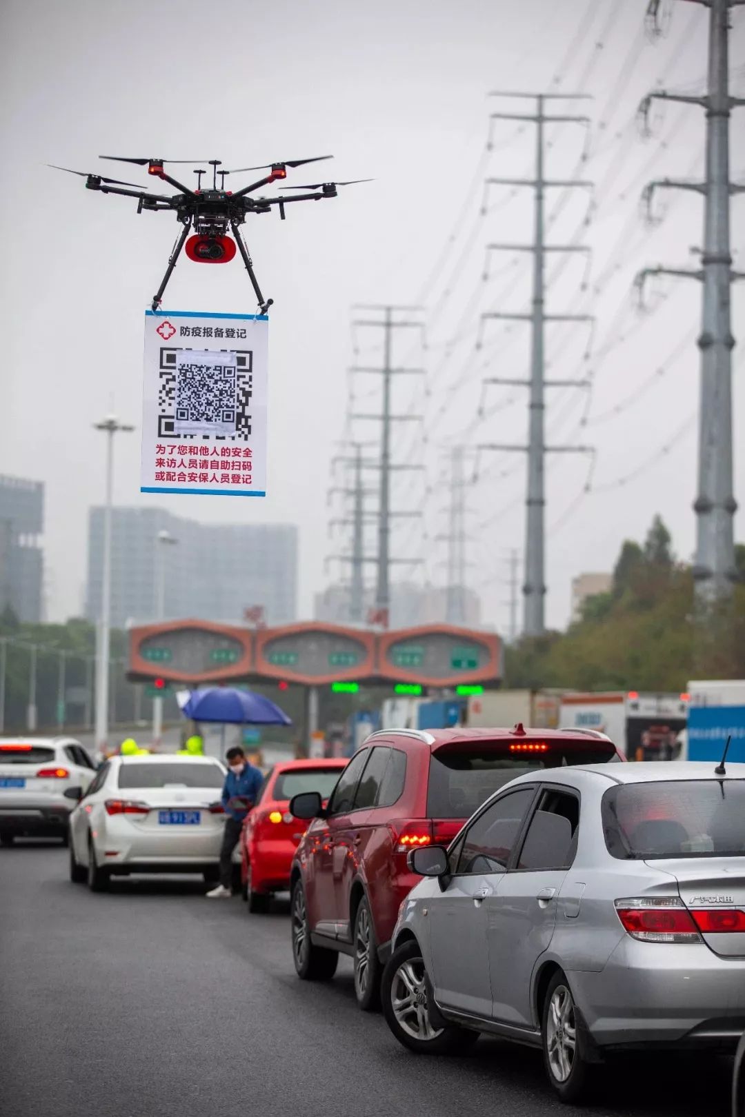 小东西飞来飞去,嗓门大,存在感极强,坚决不漏一人。无人机移动灵活,高效率引导入深车辆快速登记,大大缓解拥堵状况。