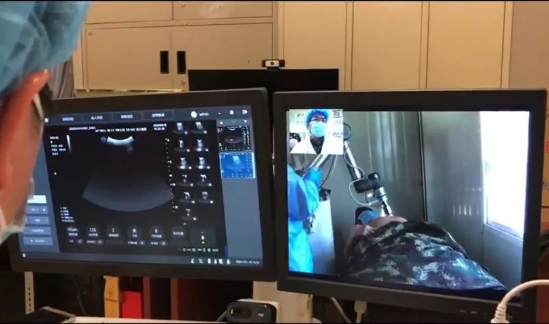 超声机器人技术是当前最先进的远程超声诊断手段,医生端远程控制病人端的机械臂和超声机器扫查,检查图像同步显示,远程专业医疗人员和现场医护人员据此协同会诊。