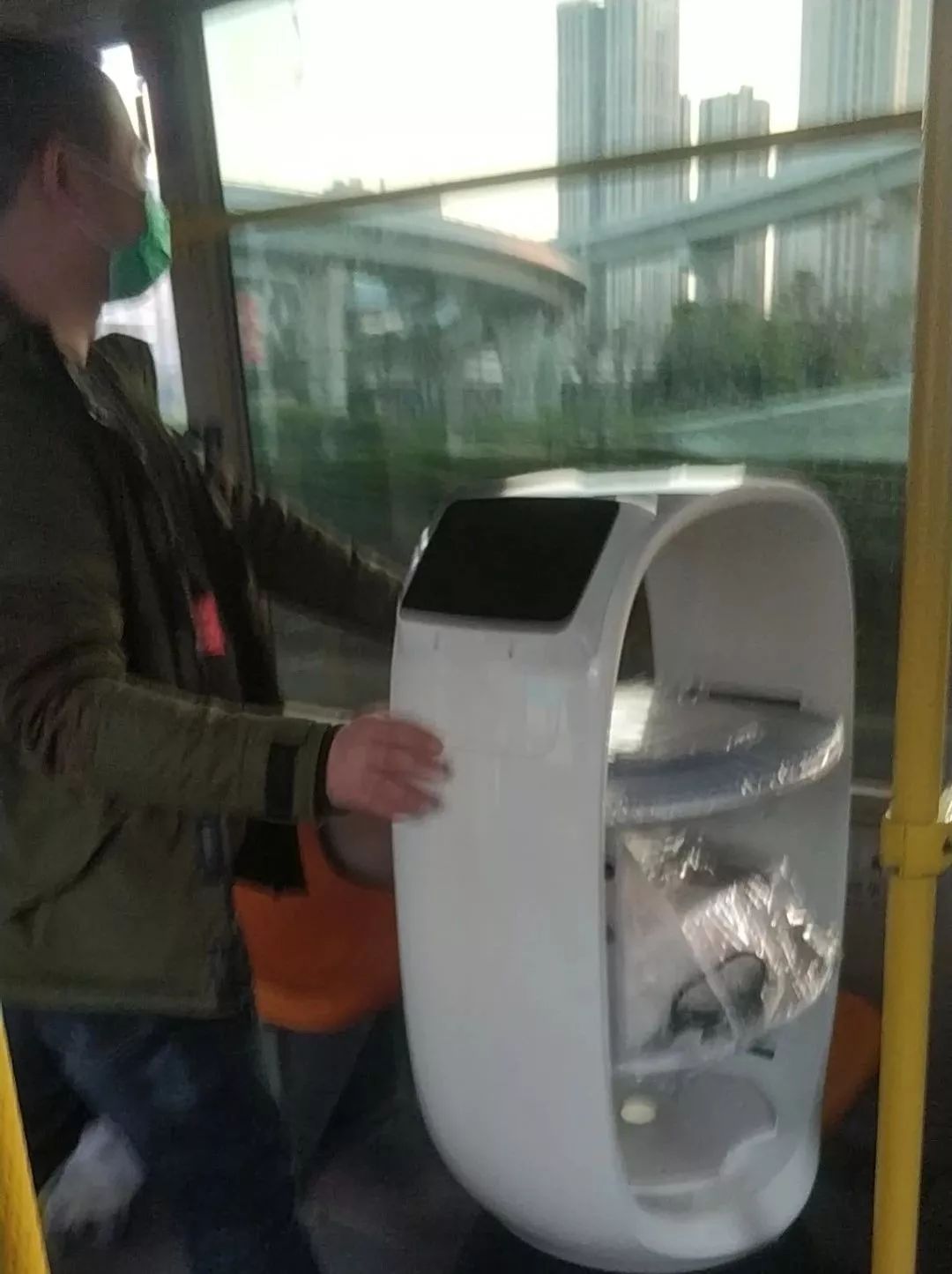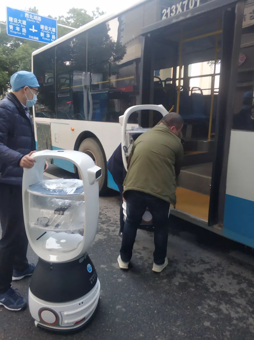 但,特殊时期,物流十分不便。刘康工程师灵机一动,联系公交车运输机器人。17点10分,机器人乘坐299路公交车赶往前线; 18点10分,机器人抵达目的地;此时,医院相关人员已在路边守候多时,准备迎接“新同事”。20点01分,医院首批开放的楼层完成机器人部署。21时许,送餐机器人正式投入使用。