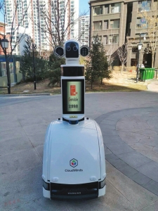 刚过去的周末,这个可爱的机器人首次在竞杰·常青藤小区亮相,金地物业公司的工作人员和工程师一起跟随机器人巡逻,帮助它适应新岗位。机器人身高约一米六,白色的机身上配备有5路摄像头,可以360度全方位视频监控环境,它一边走一边宣传着防疫知识:“勤洗手、戴口罩……”听说居民不戴口罩它也会管,有人故意摘下口罩,机器人立刻停止了宣传,转向这位居民说:“请戴上口罩!”它机智的反应引来一阵赞许的笑声。