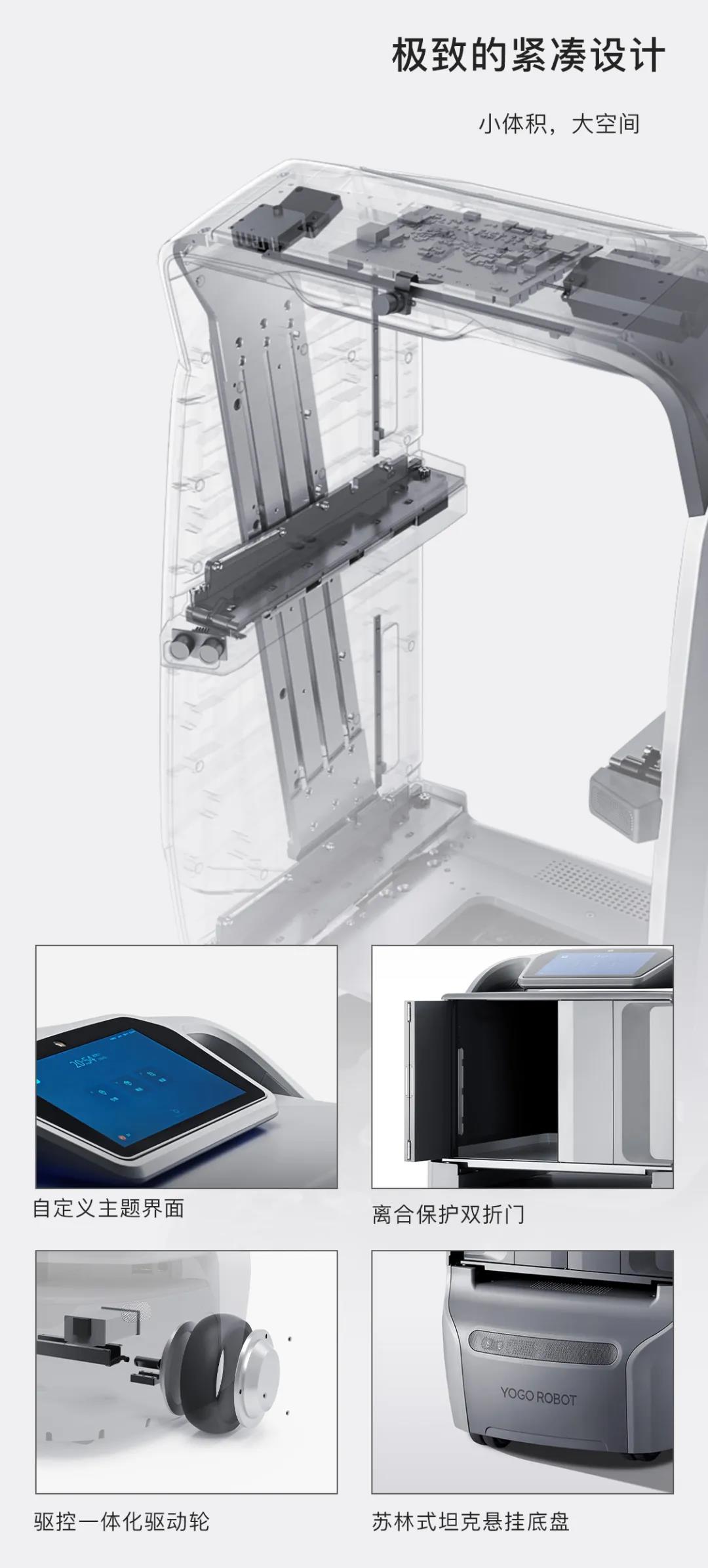 KAGO5首次实现了服务机器人的整机模块化与标准化,可以根据场景和客户需求适配不同的功能附件,满足客户多样化需求。此次武汉疫情,YOGO通过增加消毒模块,将KAGO5改造成消毒机器人,成为首个在武汉金银潭医院启用的消毒机器人,并在医院、写字楼等场景得到广泛应用。