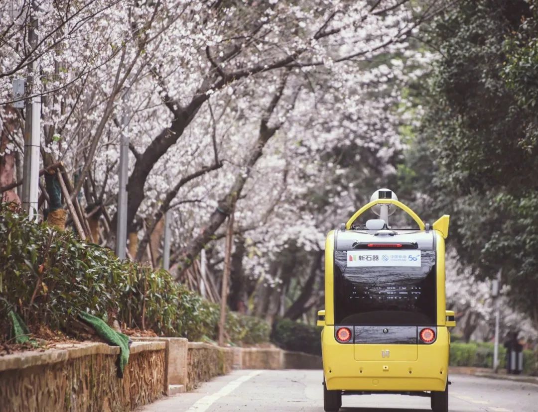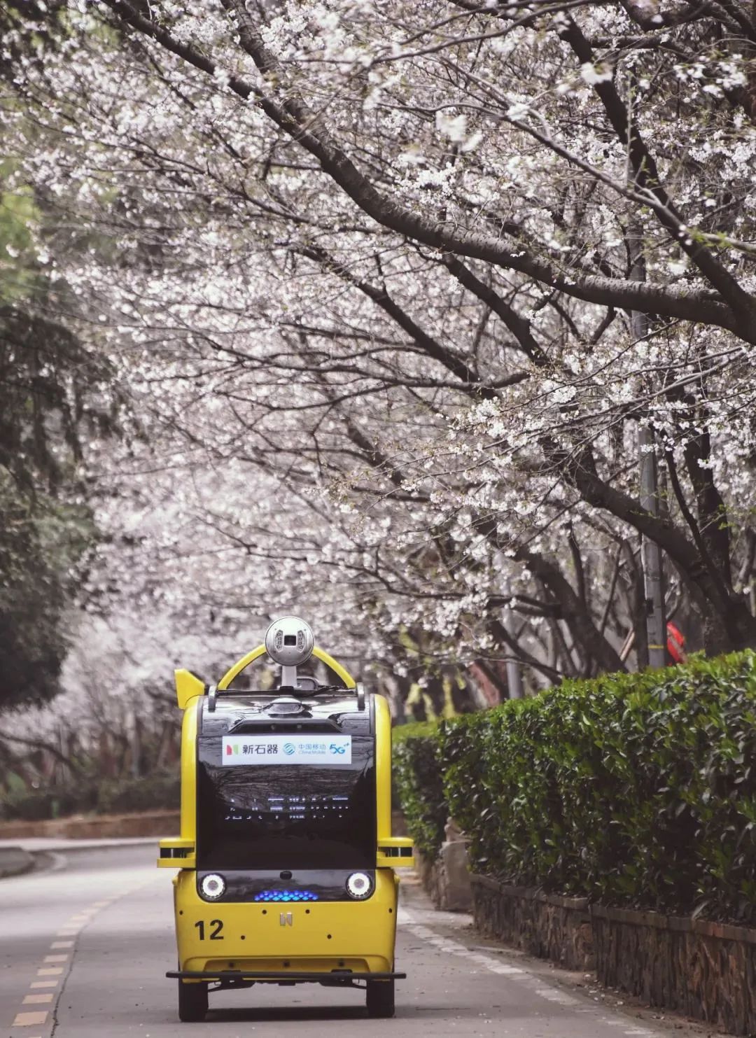 它是中国移动联合新石器公司推出的具有“新能源车”、“服务机器人”、“AI大脑”三重优势的无人4K直播车,实现了超高清视频的移动采集与高速实时传输,让广大网友以独家第一视角的感官,跨越千里“漫步”在樱花盛开的武大校园中,身临其境地感受“樱白似雪,落英缤纷”的盛景。
