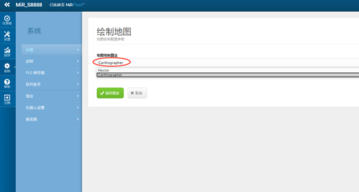 在绘制地图之前请确认绘制地图的算法为:Carthographer。