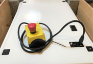 连接急停按钮盒,天线并按下开机键。