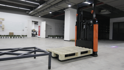 它可能是国内最快的一款全向堆高机器人,空载速度1.5m/s,比同类产品快50%左右,满载速度可达1m/s。