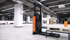 传统叉车只走直线,而它却能完成360°全向移动。