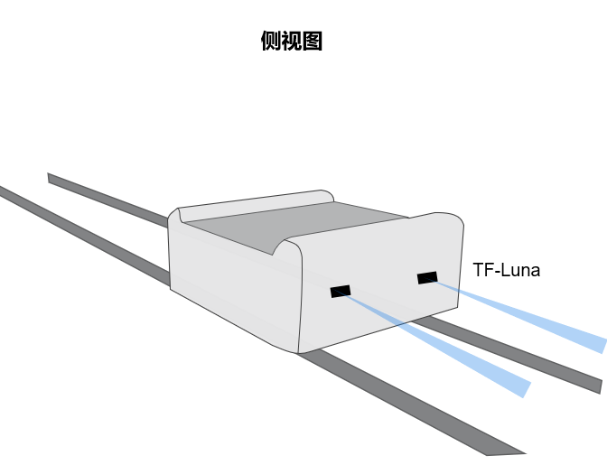 RGV在轨道上行驶过程中,为防止货架上的货物掉落从而伤害RGV或者阻碍RGV行进,在RGV头尾两侧分别装两个TF-Luna探测距离,在运行时检测到障碍物时触发RGV报警并减速/急停,保证RGV安全作业。