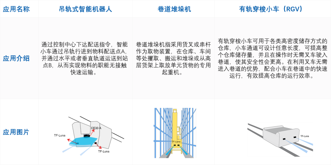 北醒激光雷达专注于各类机器人、智能小车避障解决方案,提供3D防撞、单点防撞或组合防撞等定制防撞方案。下面以吊轨式智能机器人、巷道堆垛机器人、智能轨道小车为例,分享不同应用下的避障方式。