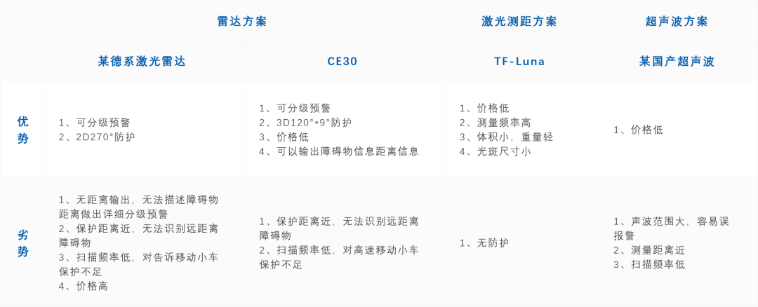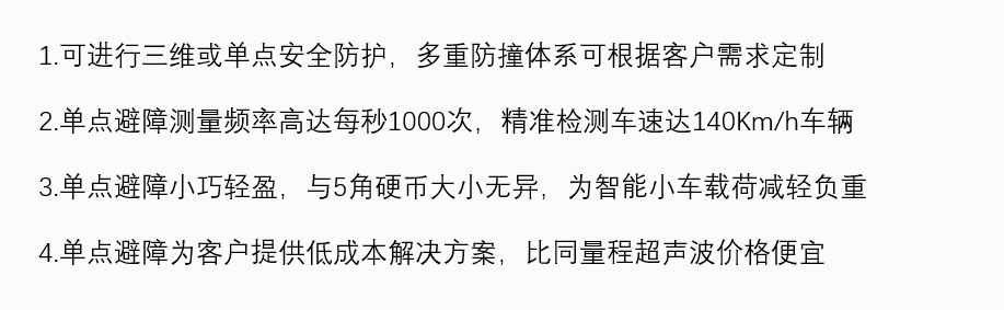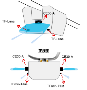 多台吊轨机器人在轨道形式过程中,为防止两台或者多台机器人互相碰撞,在机器人的头尾两侧分别装两个TF-Luna或者 CE30-A(如图)探测距离,在运行时检测到障碍物时触发巡检机器人报警并减速/急停,保证吊轨式巡检机器人安全作业。