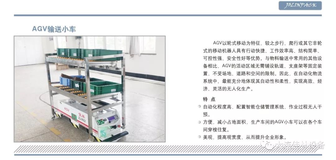 AGV以轮式移动为特征,较之步行、爬行或其它非轮式的移动机器人具有行动快捷、工作效率高、结构简单、可控性强、安全性好等优势。与物料输送中常用的其他设备相比,AGV的活动区域无需铺设轨道、支座架等固定装置,不受场地、道路和空间的限制。因此,在自动化物流系统中,最能充分地体现其自动性和柔性,实现高效、经济、灵活的无人化生产。