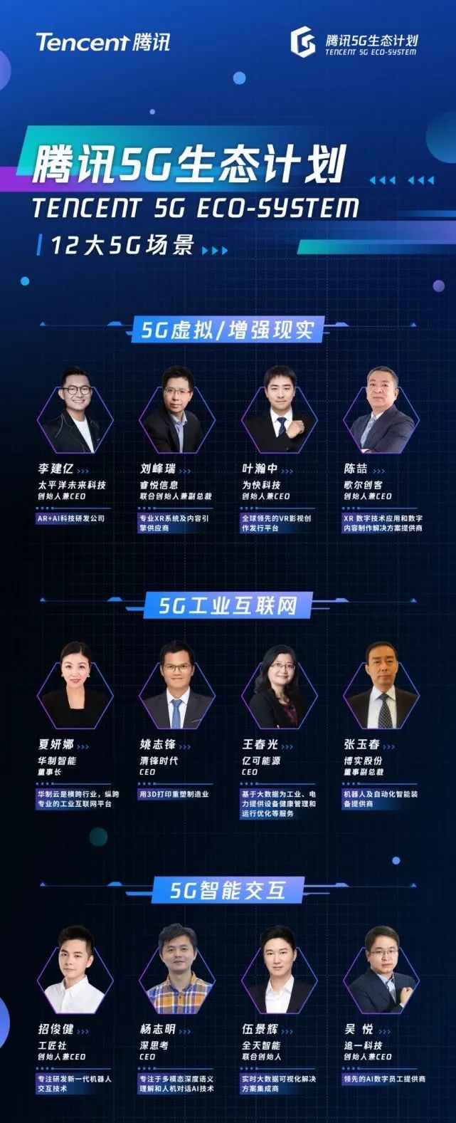 为了更好地推动5G产业化和产业5G化,2019年12月,腾讯5G生态计划正式启动。2020年4月8日,腾讯正式发布了首批最具应用潜能的5G创新合作伙伴,覆盖12个5G场景:多媒体内容、音视频技术、虚拟/增强现实、交通出行、工业互联网、生活民生、能源管理、城市管理、智能交互、智能物联、未来网络、通信感知等。