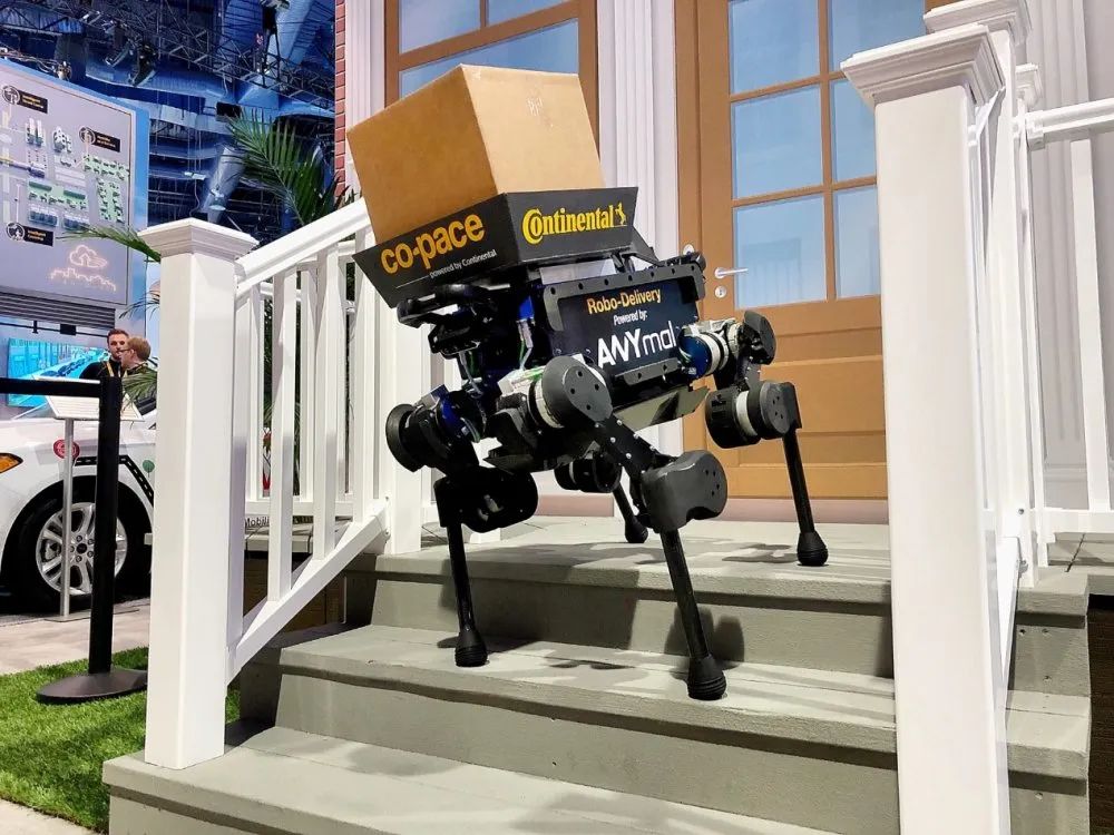 在CES 2019上,德国汽车制造公司Continental展示了他们对货物交付无缝移动性的愿景。大陆集团与ANYbotics联手,通过将自动驾驶汽车与自动腿式机器人ANYmal相结合,展示了级联的机器人交付。