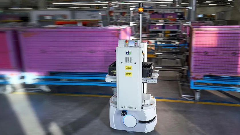 在完全无需人为干预的情况下,机器人将物料送至工人手中,并进行下一道工序的处理,由此极大地提升了物流以及生产的效率!
