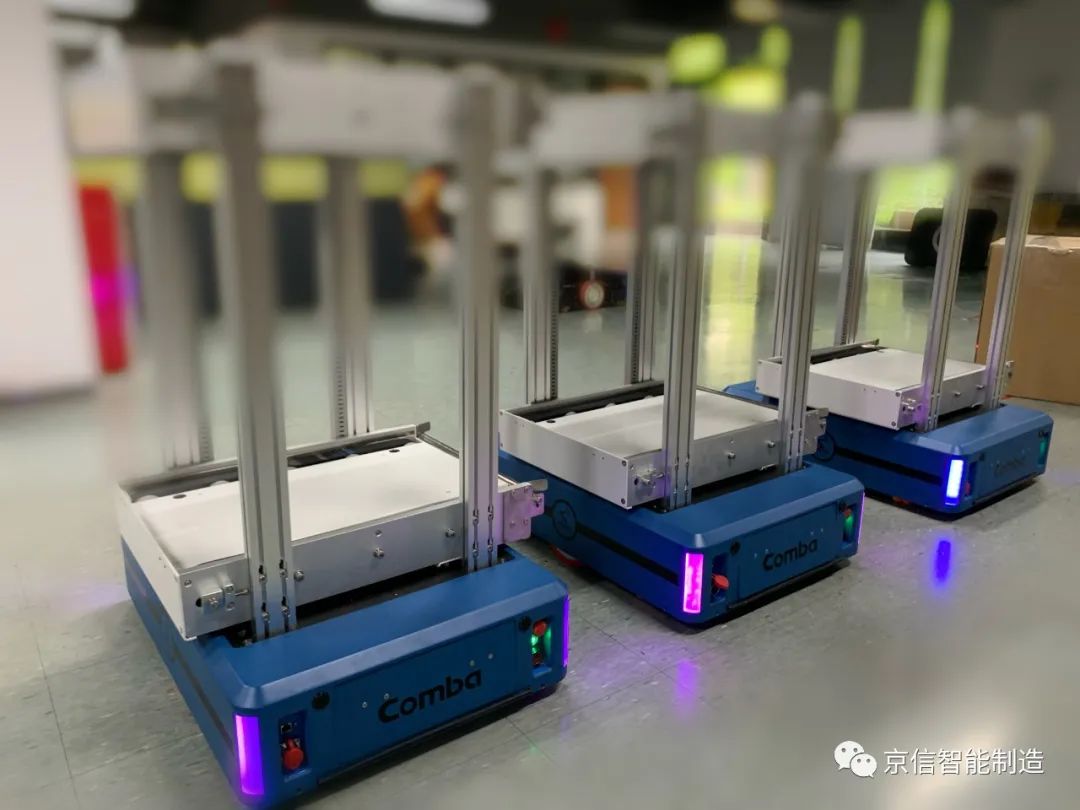 4月16日,京信智能制造顺利完成SMT某知名品牌客户的定制款AGV第三批交付。