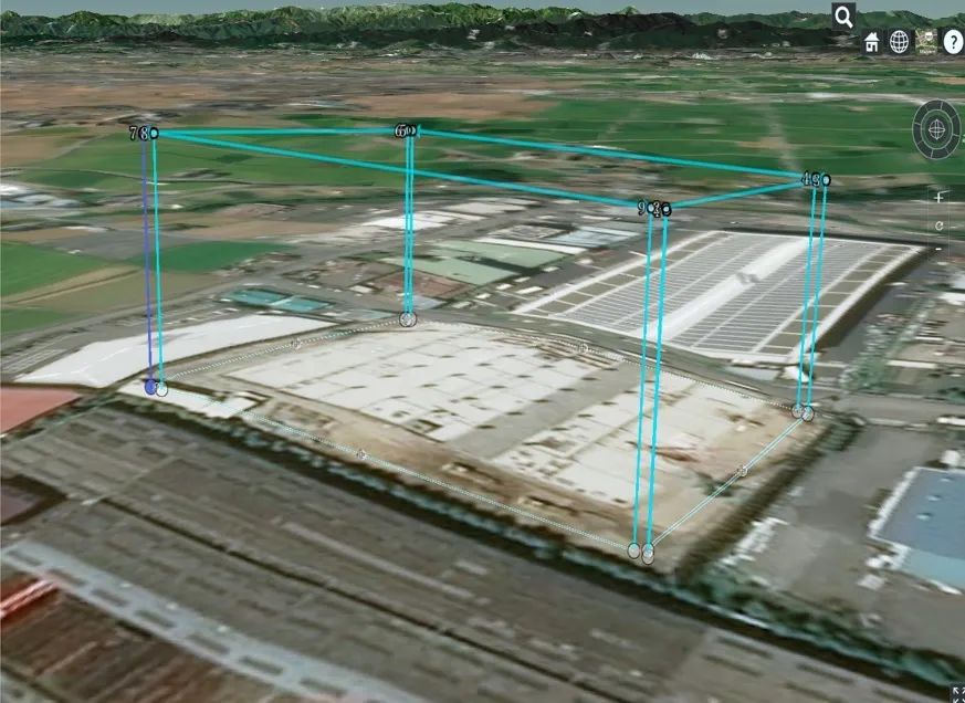此实验中,无人机会在计划的时间自动从“ SENSYN DRONE HUB”起飞,并自动沿预设路线飞行,如下图所示,确认可以返回基地并完全自动降落。