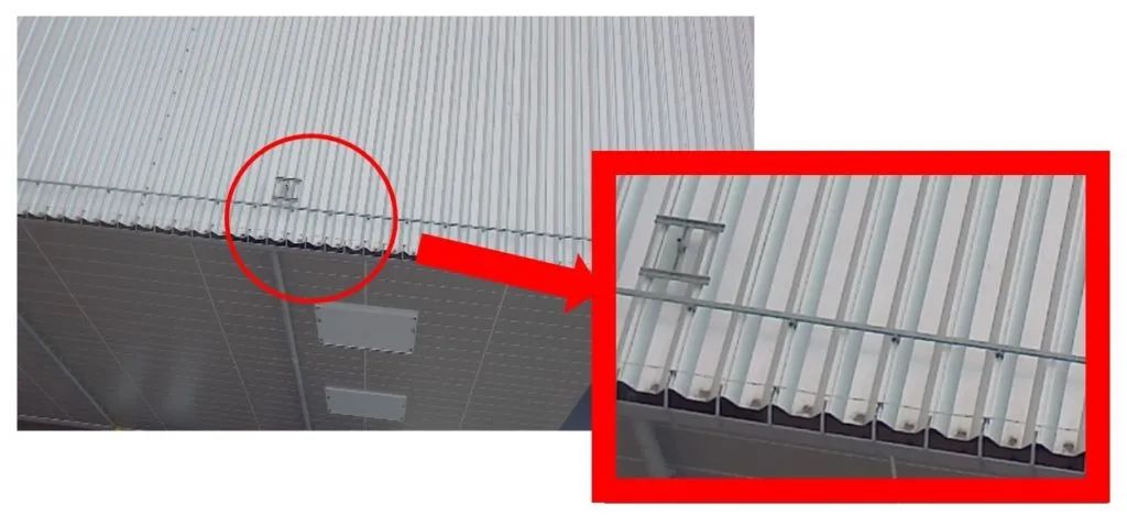 无人机捕获的放大图像显示墙壁上的污垢和雨水槽