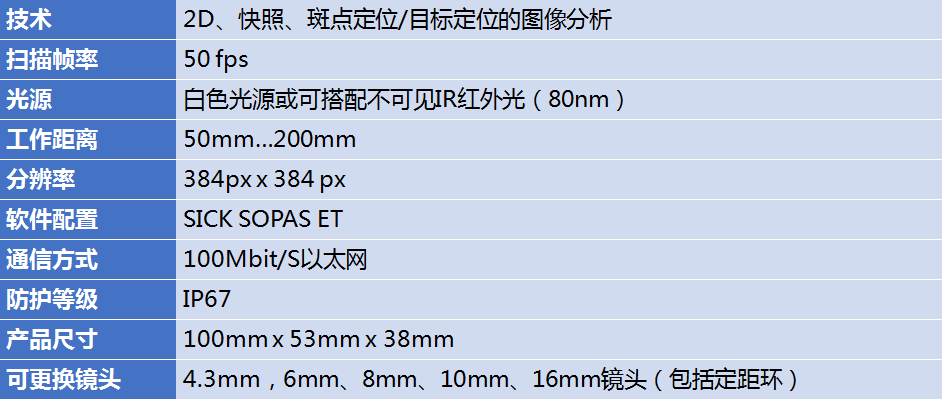 Inspector P30是一款易于使用的智能视觉传感器,适用于目标定位的工作任务。该产品配备坚固的IP 67金属外壳,采用智能处理技术,非常适用于严苛环境和高速应用。此外,Inspector P30可灵活配选镜头,可根据应用的光学需求进行优化调整,准确抓取到定位特征。相机操作简单,通信便捷,性价比高。