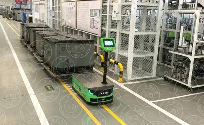 AGV小车负载核心生产部件,完成工序化的移动与安装过程,直至产品完成装配入库。在整个过程中AGV小车既扮演移动载体角色又扮演装配平台角色,AGV小车可以通过手动、自动和呼叫等方式在工作流程中的工位点之间完成产品装配,当米克力美AGV到达工位点时操作工人只需在AGV车上进行产品组装,并且生产任务可以根据生产需求随时更换,生产柔性更高。