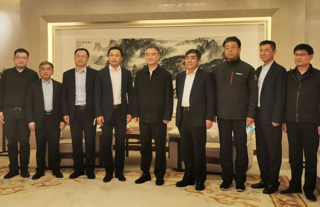 青岛市委书记王清宪(左五)、青岛市副市长朱培吉(右四)一行与刘培超(左四)一行进行座谈
