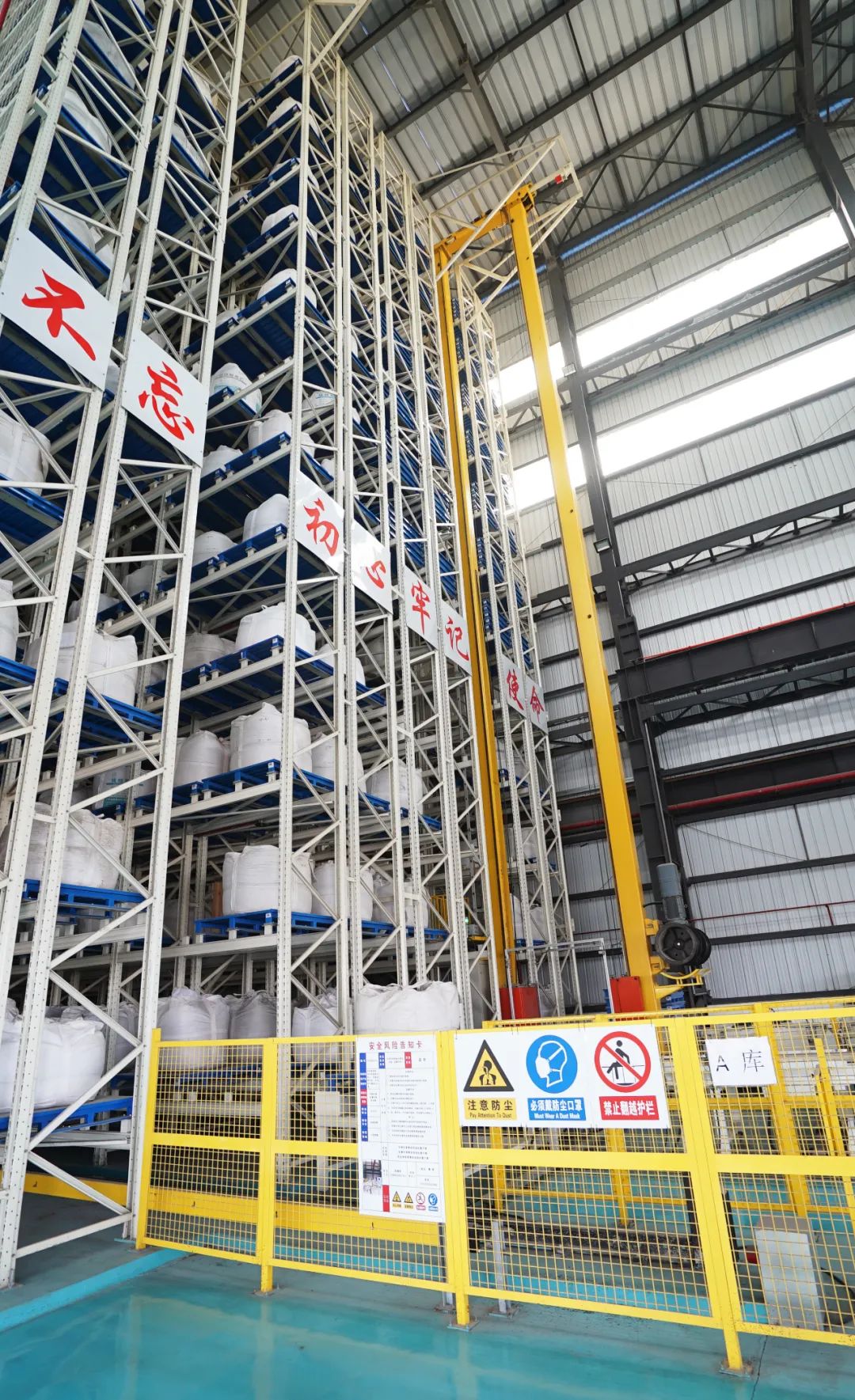 这两个仓库存放的是瑞泰马钢不同品种的原材料,分别衔接着不同生产工艺流程。共配置4台高度22米的双立柱双深位堆垛机、智能RGV等设备。其中,智能RGV设备作为出入库主输送线,能够有效减少常规输送机的使用、优化流程,很好的契合了瑞泰马钢最大程度利用仓库空间的建设初衷。