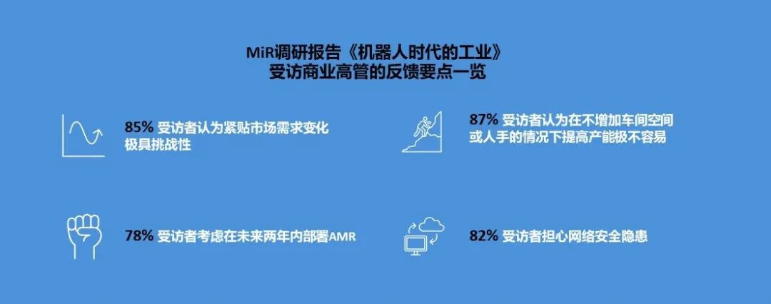 最早部署AMR的先驱早已看到这项技术可量化的具象优点,而一些制造商则无法完全理解其商业价值和巨大潜力。MiR的调研报告有如下发现: