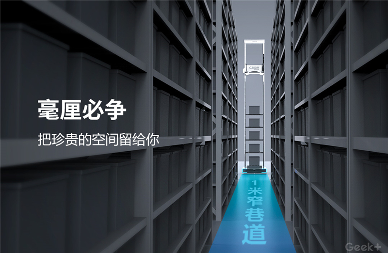 极智嘉的单层高密度存储方案采用双伸位、窄巷道、超广立体覆盖的货箱到人机器人C200M,实现了迄今为止单层存储能力最强的AMR解决方案。C200M创新地采用1.4米双伸位设计,机器人在货架单侧即可完成两列货箱的纵深存取,库区内的整体通道面积最多可节省50% ,减少仓租成本。