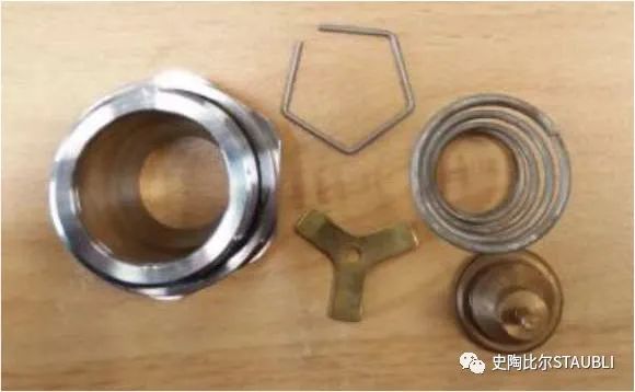 2. 依次取出卡环、挡片、弹簧和密封头。
