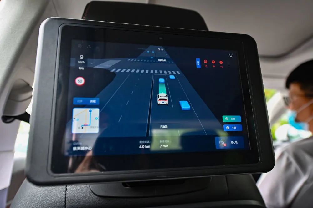 5月14日,智能网联汽车后排屏幕显示着车辆运动轨迹。