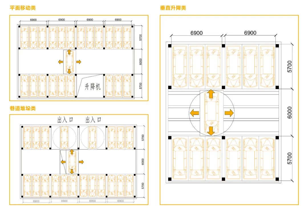 可应用在汽车搬运领域与机械式停车库中的平面移动、巷道堆垛、塔库等常规类型的车库,还可用于一些非标的车库类型。