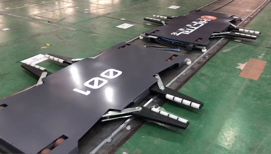 搬运器在设计时不仅结构得到了很大的优化,其它传动部件,电器元件等也有所加强,整体安全系数更高。此外搬运器夹臂还采用辊筒式设计,解决了轮胎对夹臂的摩擦以及单点受力的情况,避免对轮胎的伤害。