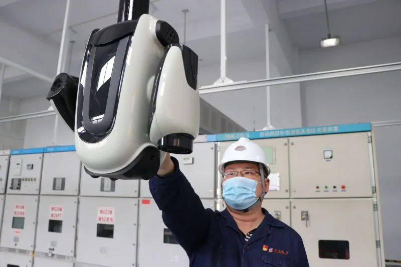 室外巡检机器人具有拟人化的形态与功能。机器人头部的一双“眼晴”,分别是红外检测系统和高清摄像设备,可对谢庄站室外设备共计1700巡视点进行全方位精细化监测,巡视全程只需3个小时。巡检机器人底部通过四驱转轮完成前进和转弯的动作,巡视完毕后或者电量不足时,巡检机器人会自主返回充电房进行充电。